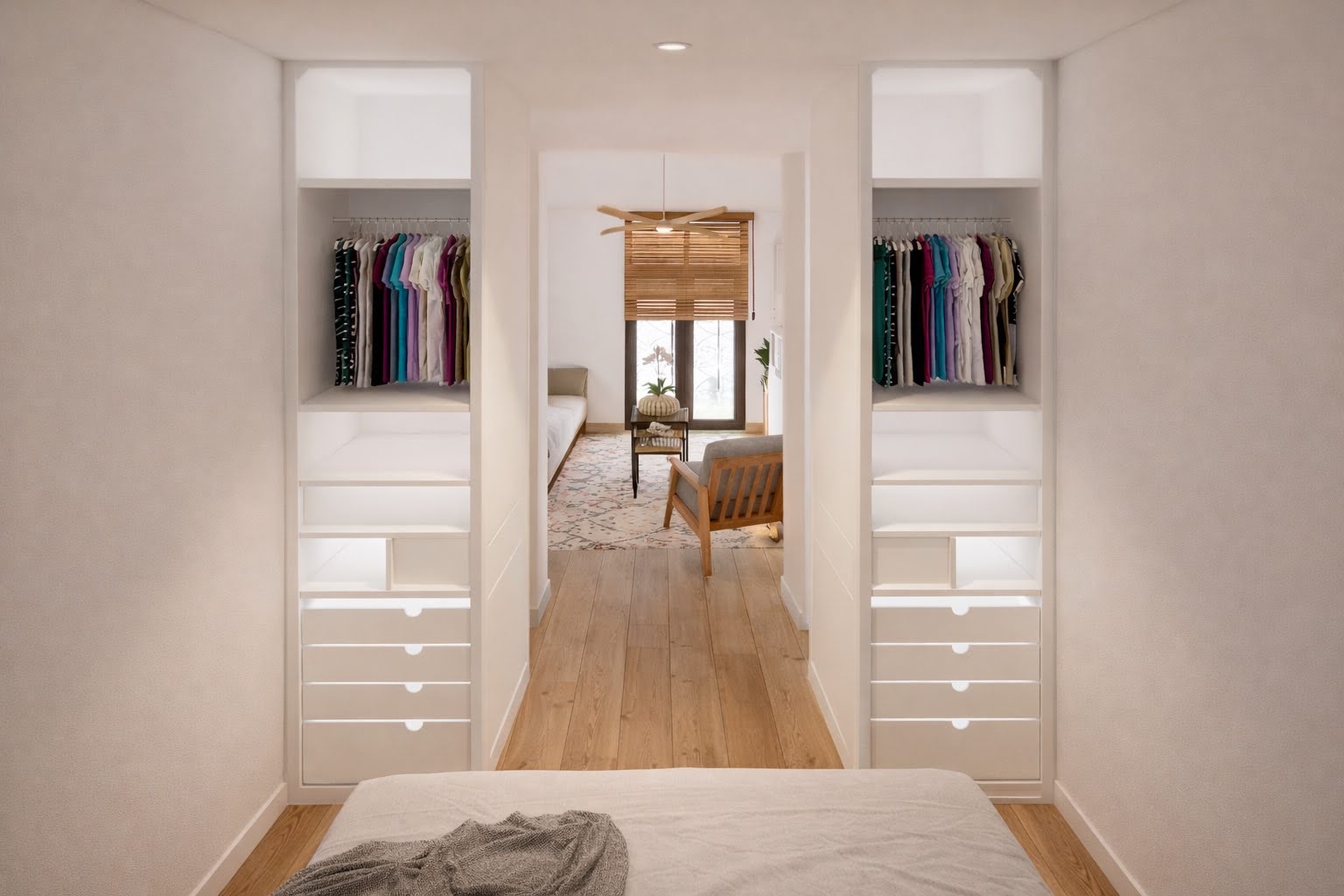 Les propriétaires de cet appartement m’ont sollicitée pour une refonte totale de l’espace. L’appartement, comprenant seulement deux fenêtres, nécessitait une réorganisation complète. Toutes les cloisons ont été démolies selon leur demande. Ils aspiraient à un vaste espace de vie lumineux, comprenant une chambre distincte et offrant de nombreux rangements.