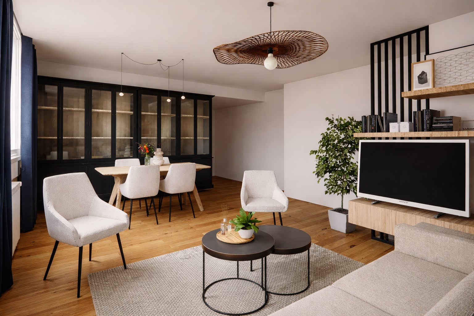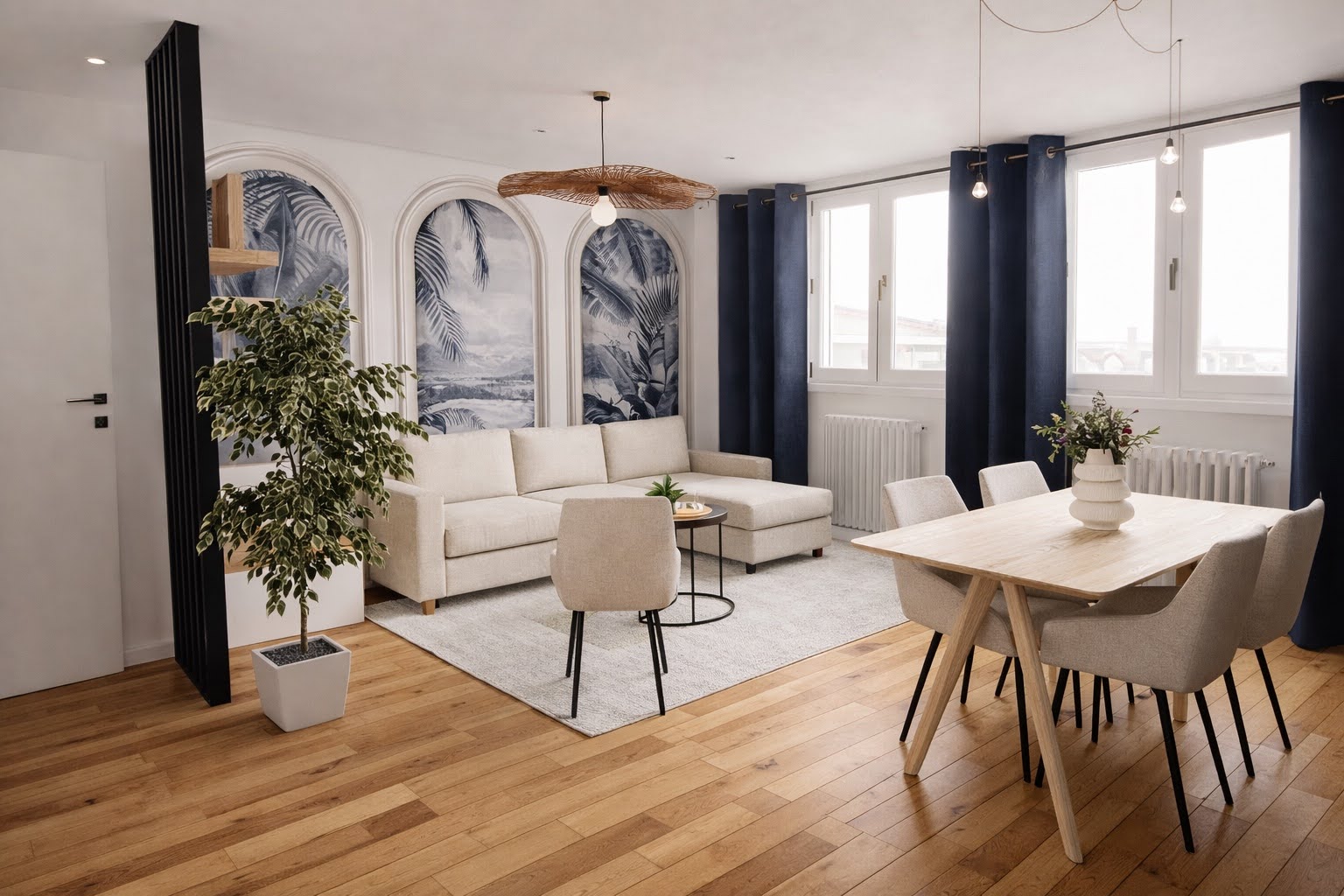 Un couple et leurs enfants âgés de 12 et 10 ans souhaitaient moderniser leur maison. Ma cliente adore cuisiner mais ne veut pas se sentir trop isolée dans sa cuisine. Elle reçoit rarement dans un cadre formel et préfère les événements conviviaux en famille ou entre amis. Sa demande a donc été de revoir entièrement son rez-de-chaussée, créer un nouvel agencement avec une salle à manger plus accueillante, une cuisine plus fonctionnelle et des espaces de vie agrandis pour leurs activités en famille et leurs divertissements occasionnels.